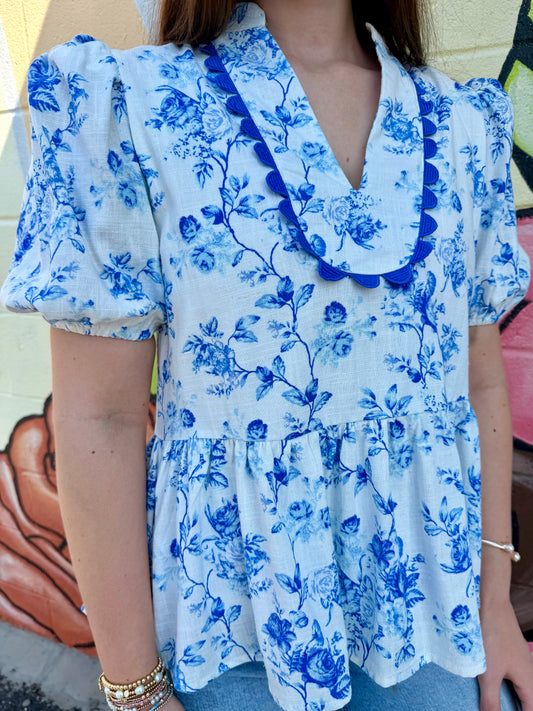 Blue Floral Blouse