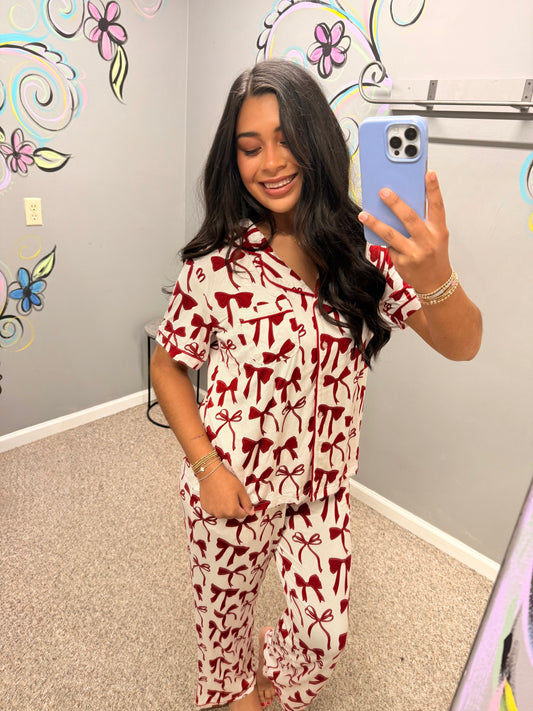 Sold outCharlotte Crimson Bow Pant Set