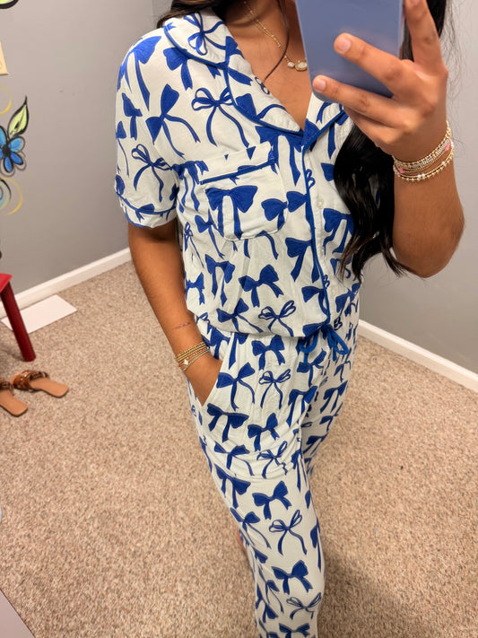 Sold outCharlotte Blue Bows Pant Set