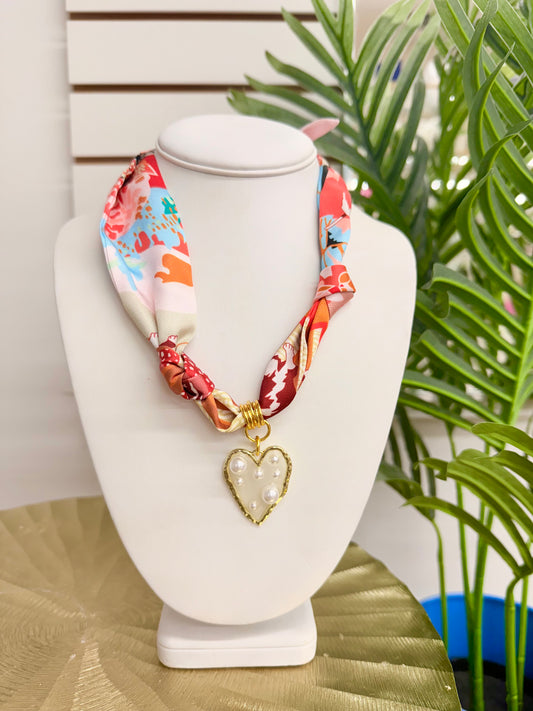 Scarf Necklace Heart, Opem Cross, & Bow Charm