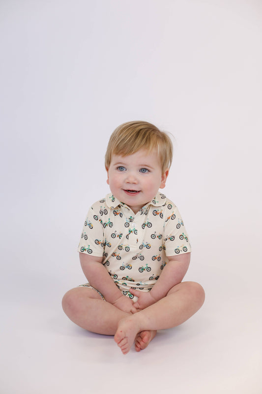 Bike Buddies Short Sleeve Polo Romper : 12-18 mo